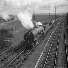 A1 4-6-2 60142 "Edward Fletcher" heads a train of loaded petrol tanks at New Craighall 4/63 [102141]