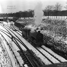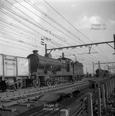 B1 4-6-0 61374 approaching King's Cross passes L1 2-6-4T 67787 on the suburban lines 8/59 [102250]