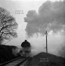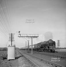 A1 Pacific 60158 "Aberdonian" is framed by trackside structures at Wymondley 3/61 [102158]