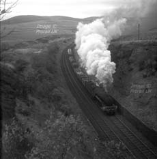 V2 2-6-2 60813 heads a lengthy freight train through the fells at Whitrope 10/65 [102183]