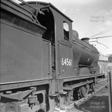 In this close-up view, J37 0-6-0 64561 stands in the yard at Dunfermline Lower 4/64 [102412]
