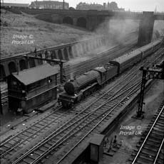 V2 2-6-2 60912 passes Copenhagen Junction signalbox with a passenger train 9/59 [102201]