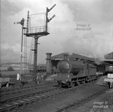J38 0-6-0 65921 heads a short freight train at Bogside 4/64 [102474]