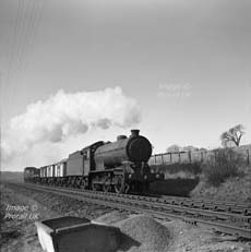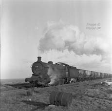 Q6 0-8-0 63440 hauls a load of mineral hopper wagons at Hart 3/66 [102319]