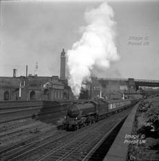 A4 60022 "Mallard" departing from London passes the King's Cross yards towards Belle Isle 5/61 [102044]