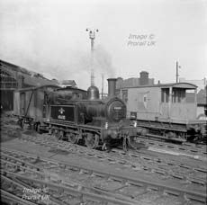 B12 61572 inside Willesden Shed with 46245 "City of London" in the roundhouse beyond 9/63 [102282]