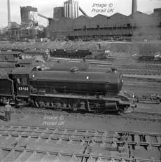 The steelworks supply the background for "ex works" Q7 0-8-0 63460 at Consett MPD 9/63 [102327]