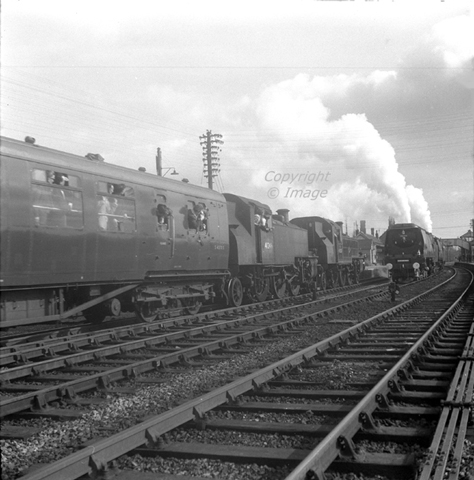 Q7 0-8-0 63469 with brake van passes wagons of scrap material near South Pelaw 3/62