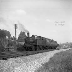 0-6-0PT 3681 heads a two coach local train near Chalford 1964 [100159]