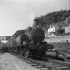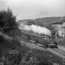 Lacking smokebox numberplate, 1472 is ready to leave Brimscombe with two coaches 1964 [100093]