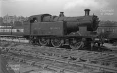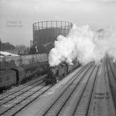 2-6-2T 6132 heads a down suburban train at wintry Old Oak Common 1/63 [100476]