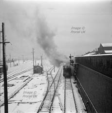 Arctic conditions at North Pole Junction with 0-6-0PT 1507 in the empty yard 31/12/61 [100122]
