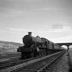 Modified Hall 4-6-0 6990 "Witherslack Hall" on train [F29] at Pilning 8/61 [100576]