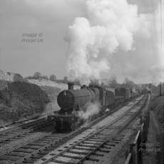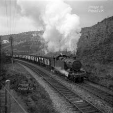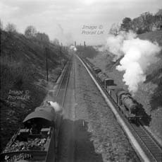 0-6-0 2292 at Cattybrook (banked out of the Severn Tunnel by 2-6-2T 5191) passes a "Hall" 4/62 [100135]
