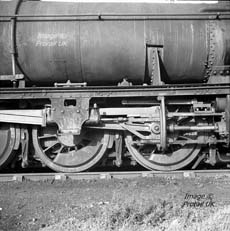 Close-up of 2-8-0 2842 - details of crosshead vacuum pump, etc. - at Southall MPD 1964 [100142A]