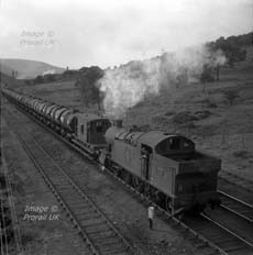2-8-2T 7212 banks block oil train ex-Llandarcy BP Refinery to Ebbw Vale Steelworks at Cwm 4/61 [100617]