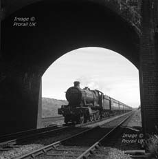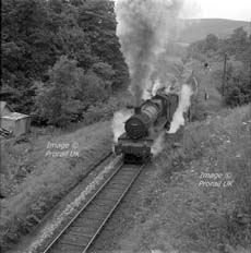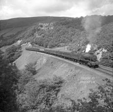 4-6-0 7828 "Odney Manor" crosses the substantial embankment at Talerddig 1964 [100662A]