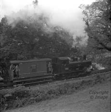 Outside cylinder 0-6-0PT 1369 hauls PRC special brake van working near Wenford 31/10/64 [100078]